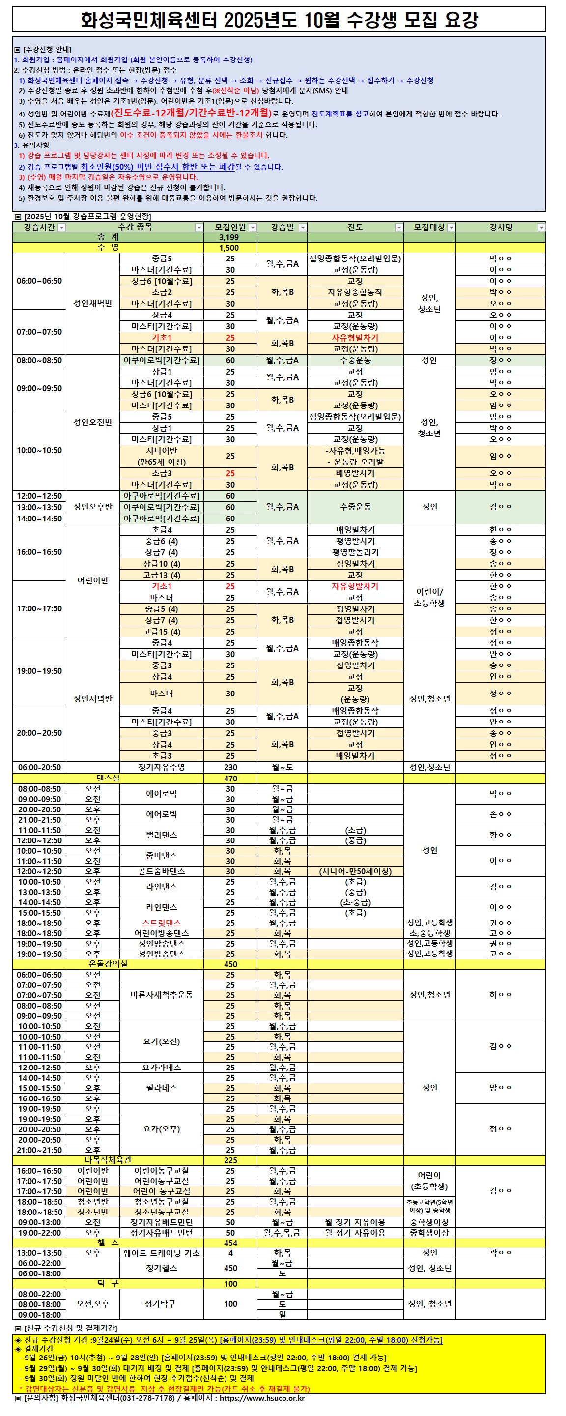 화성국민체육센터 화성국민체육센터 2025년 10월 수강생 모집 요강 작성자 관리자 작성일 2025년 9월 23일 10시 4분 3초 조회 1,803 2025년도 10월 화성국민체육센터 프로그램 모집요강.jpg [ Size : 1.16MB, Down : 3,566 ] 미리보기 다운로드 목록보기