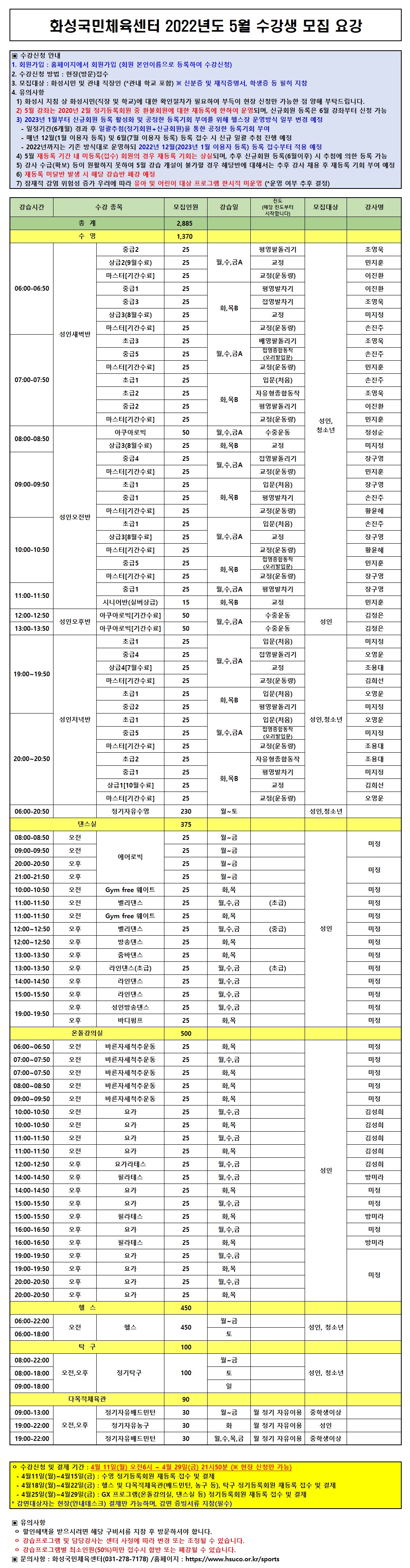화성국민체육센터 화성국민체육센터 2022년 5월 수강생 모집요강 작성자 관리자 작성일 2022년 4월 7일 11시 19분 37초 조회 2,147 화성국민체육센터 2022년도 5월 수강생 모집요강.jpg [ Size : 1.22MB, Down : 3,571 ] 미리보기 다운로드 목록보기