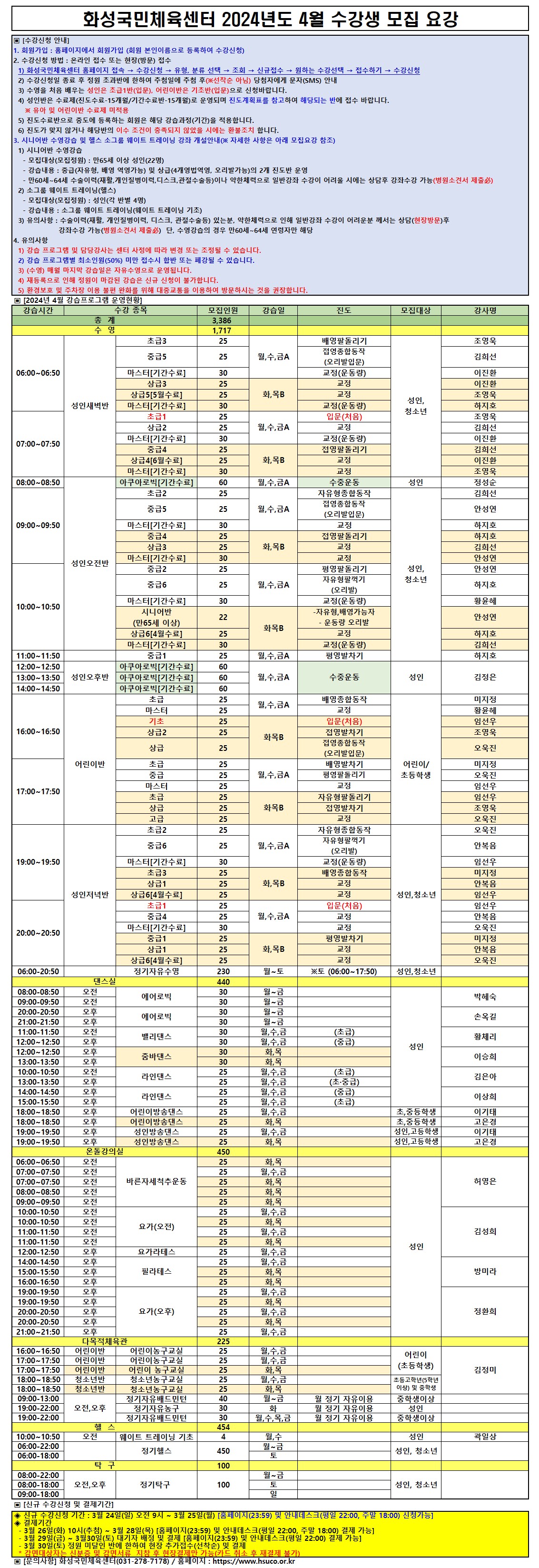화성국민체육센터 화성국민체육센터 2024년도 4월 수강생 모집요강 작성자 관리자 작성일 2024년 3월 22일 16시 37분 3초 조회 3,280 2024년 4월 화성국민체육센터 프로그램 모집요강.jpg [ Size : 1.09MB, Down : 6,435 ] 미리보기 다운로드 목록보기
