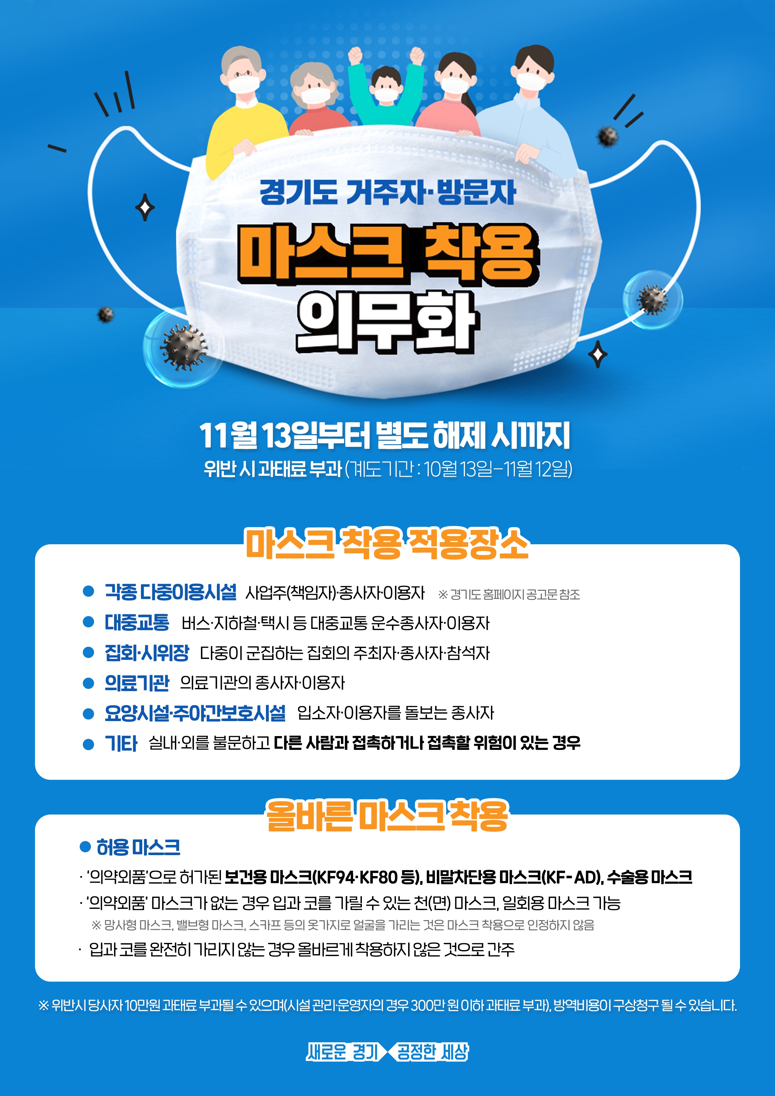 화성국민체육센터 마스크 착용 의무화 안내 작성자 관리자 작성일 2020년 11월 9일 17시 2분 4초 조회 1,189 20201110.jpg [ Size : 1.1MB, Down : 1,366 ] 미리보기 다운로드 목록보기