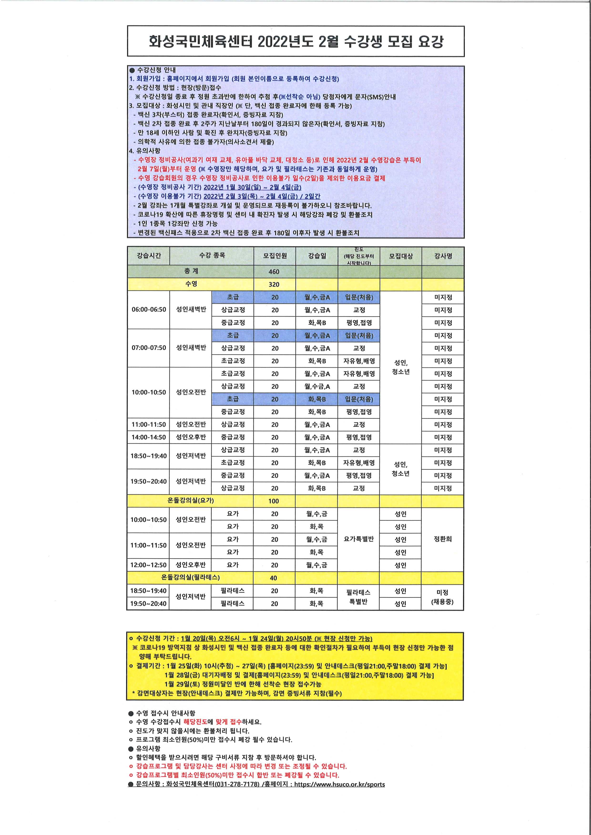 화성국민체육센터 화성국민체육센터 2022년도 2월 임시(특별)강좌 수강생 모집요강 작성자 관리자 작성일 2022년 1월 18일 22시 10분 0초 조회 1,283 2022년도 2월 모집요강.jpg [ Size : 912.43KB, Down : 1,847 ] 미리보기 다운로드 목록보기