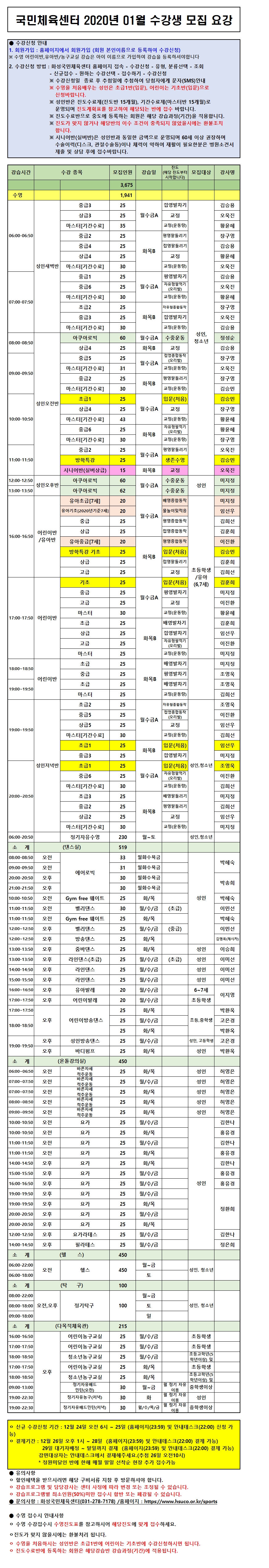 화성국민체육센터 화성국민체육센터 2020년 1월 수강생 모집요강 작성자 관리자 작성일 2019년 12월 23일 15시 27분 56초 조회 2,538 1월 수강모집최종.jpg [ Size : 2.32MB, Down : 3,371 ] 미리보기 다운로드 목록보기