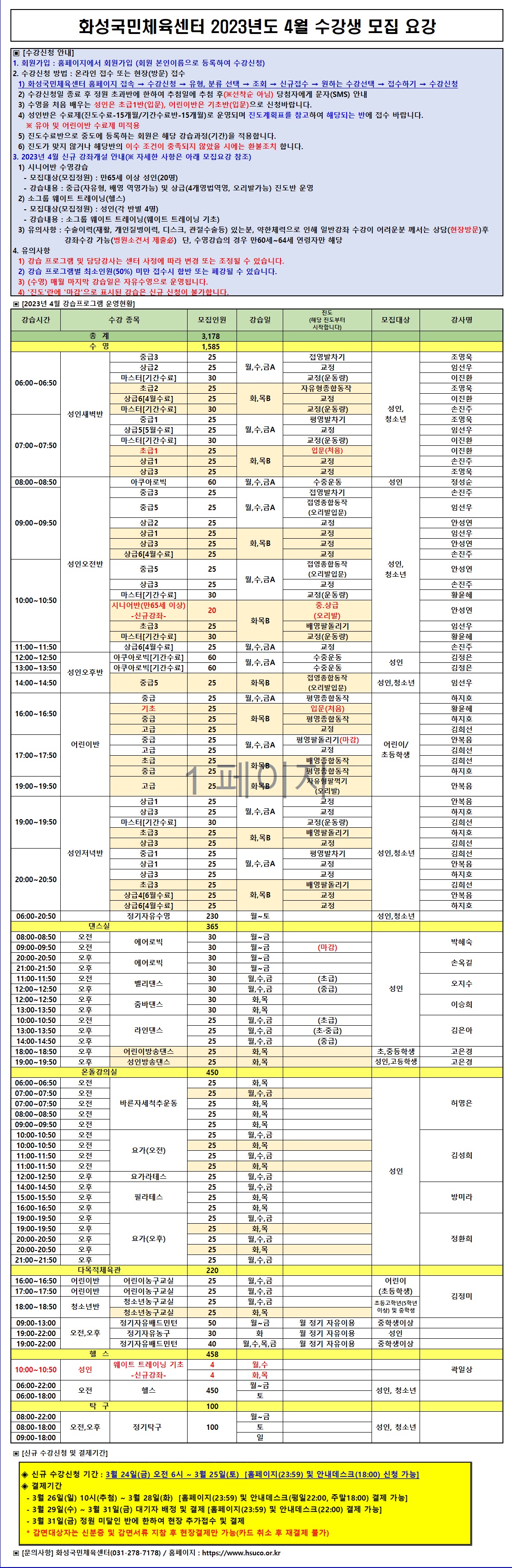 화성국민체육센터 화성국민체육센터 2023년 4월 수강생 모집요강 작성자 관리자 작성일 2023년 3월 23일 16시 57분 7초 조회 2,799 화성국민체육센터 2023년 4월 수강생 모집요강.jpg [ Size : 1.31MB, Down : 5,047 ] 미리보기 다운로드 목록보기