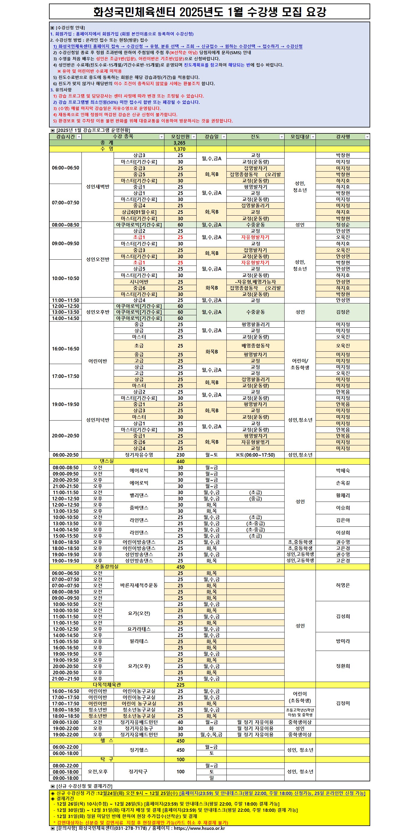 화성국민체육센터 화성국민체육센터 2025년 1월 수강생 모집 요강 작성자 관리자 작성일 2024년 12월 23일 14시 28분 10초 조회 2,682 2025년도 1월 화성국민체육센터 프로그램 모집요강.jpg [ Size : 1004.7KB, Down : 5,557 ] 미리보기 다운로드 목록보기