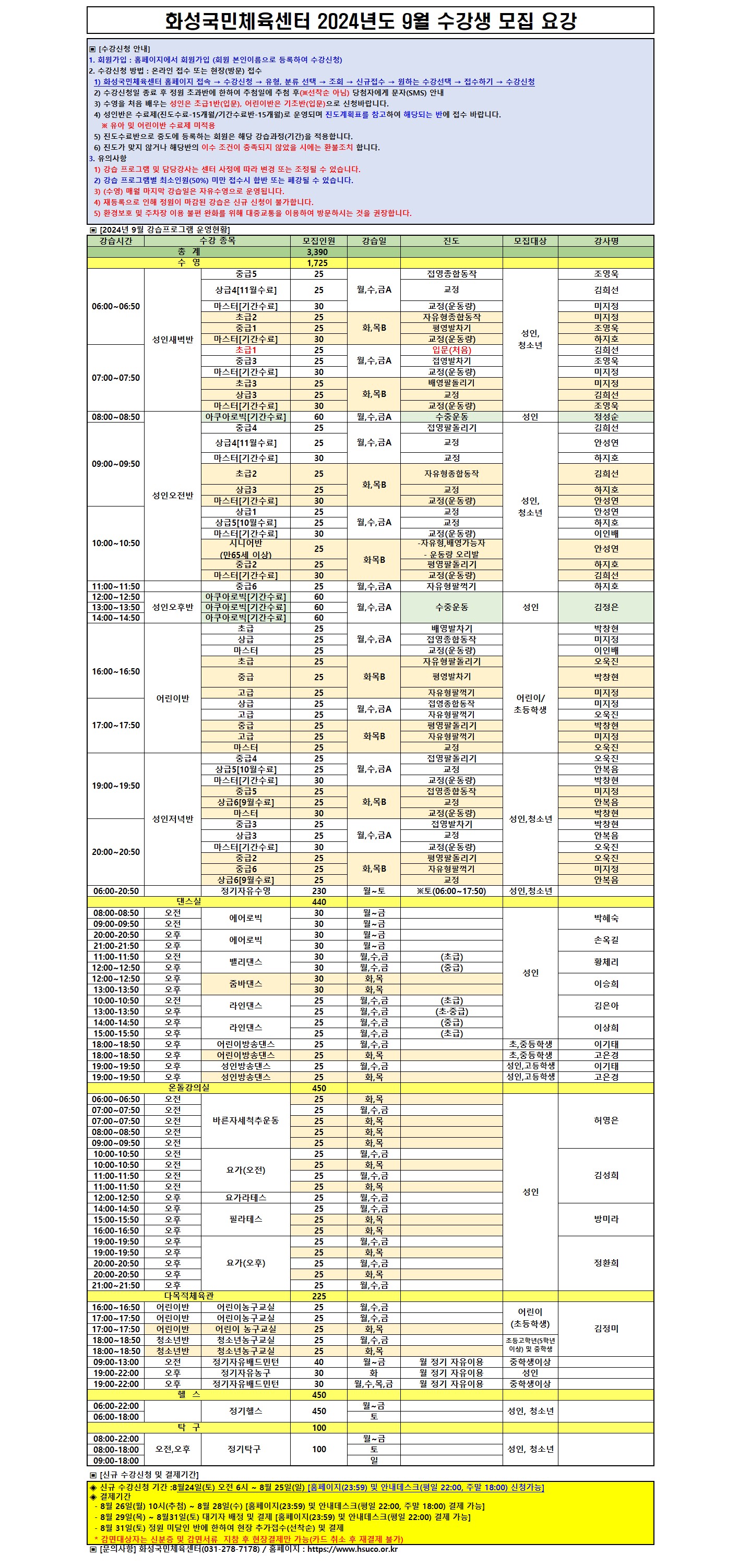 화성국민체육센터 화성국민체육센터 2024년 9월 수강생 모집 요강 작성자 관리자 작성일 2024년 8월 22일 19시 51분 31초 조회 2,768 화성국민체육센터 2024년도 9월 수강생 모집 요강.jpg [ Size : 1.01MB, Down : 5,581 ] 미리보기 다운로드 목록보기