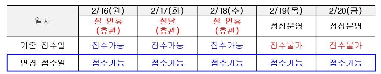 공지 화성국민체육센터 화성국민체육센터 다목적체육관 2월 대관 접수(3월 대관)일정 변동 안내 작성자 관리자 작성일 2026년 1월 22일 9시 57분 37초 조회 126 캡처.PNG [ Size : 45.01KB, Down : 14 ] 미리보기 다운로드 설 연휴 기간으로 인해 화성국민체육센터 다목적체육관 3월 대관 접수 일정(접수기간 2월)이 아래와 같이 변동됨을 알려드립니다. 목록보기
