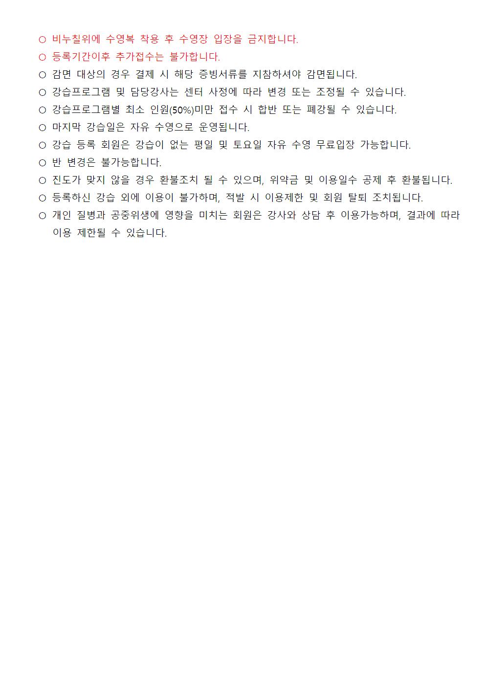 신규 등록기간과 당첨자 및 대기자 명단확인은 홈페이지 또는 안내데스크를 통해 꼭 확인하시어 진행해주시길 바랍니다.