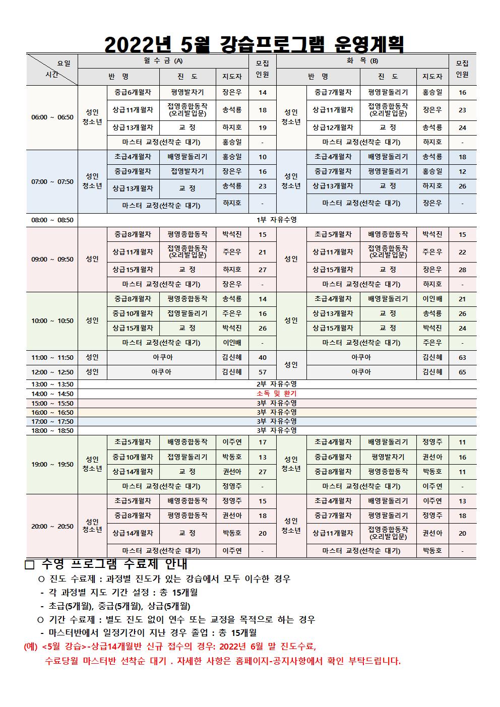 2022년 5월 강습프로그램 계획은 첨부파일 확인을 부탁드립니다.