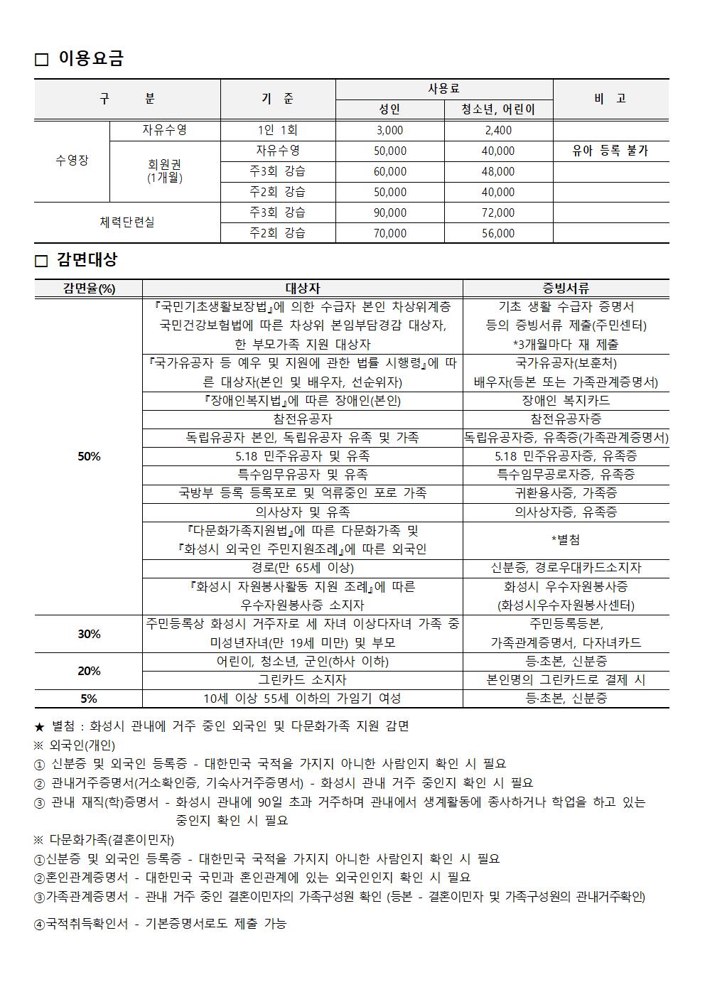 - 감면대상자는 결제시 감면서류를 반드시 제시하셔야 감면됩니다(기존회원도 재확인)