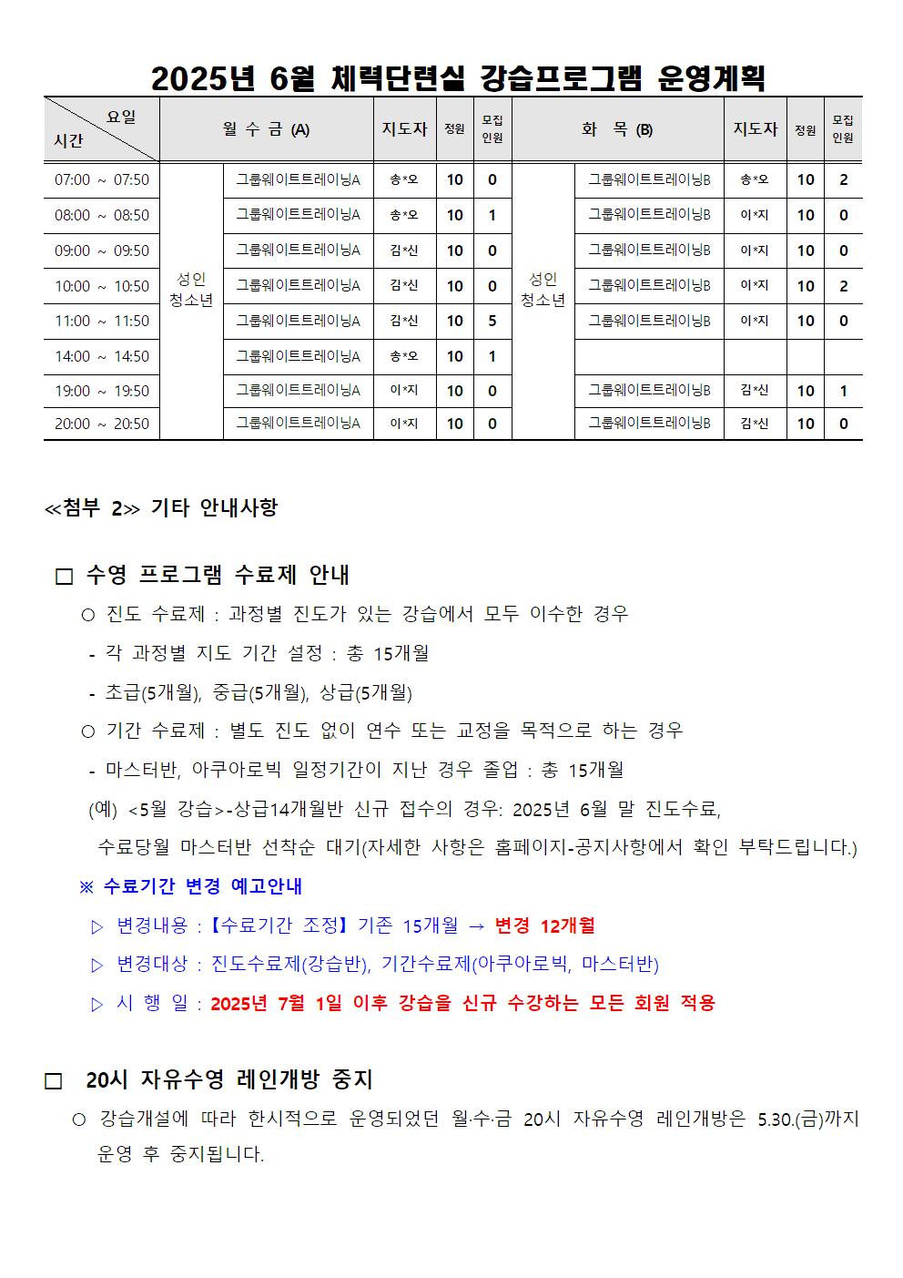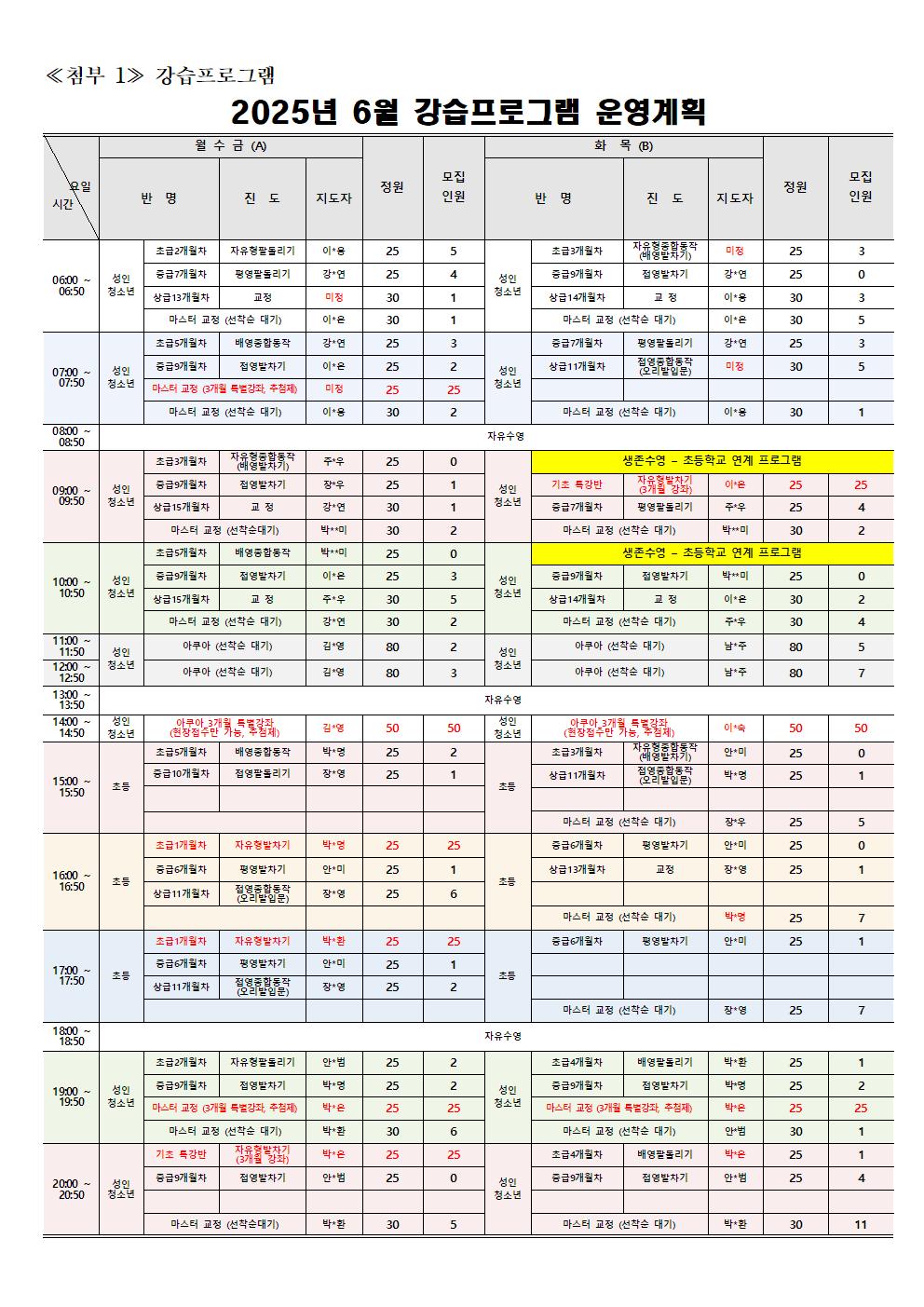 동탄중앙어울림센터 2025년 6월 정규강습 신규회원 모집 안내