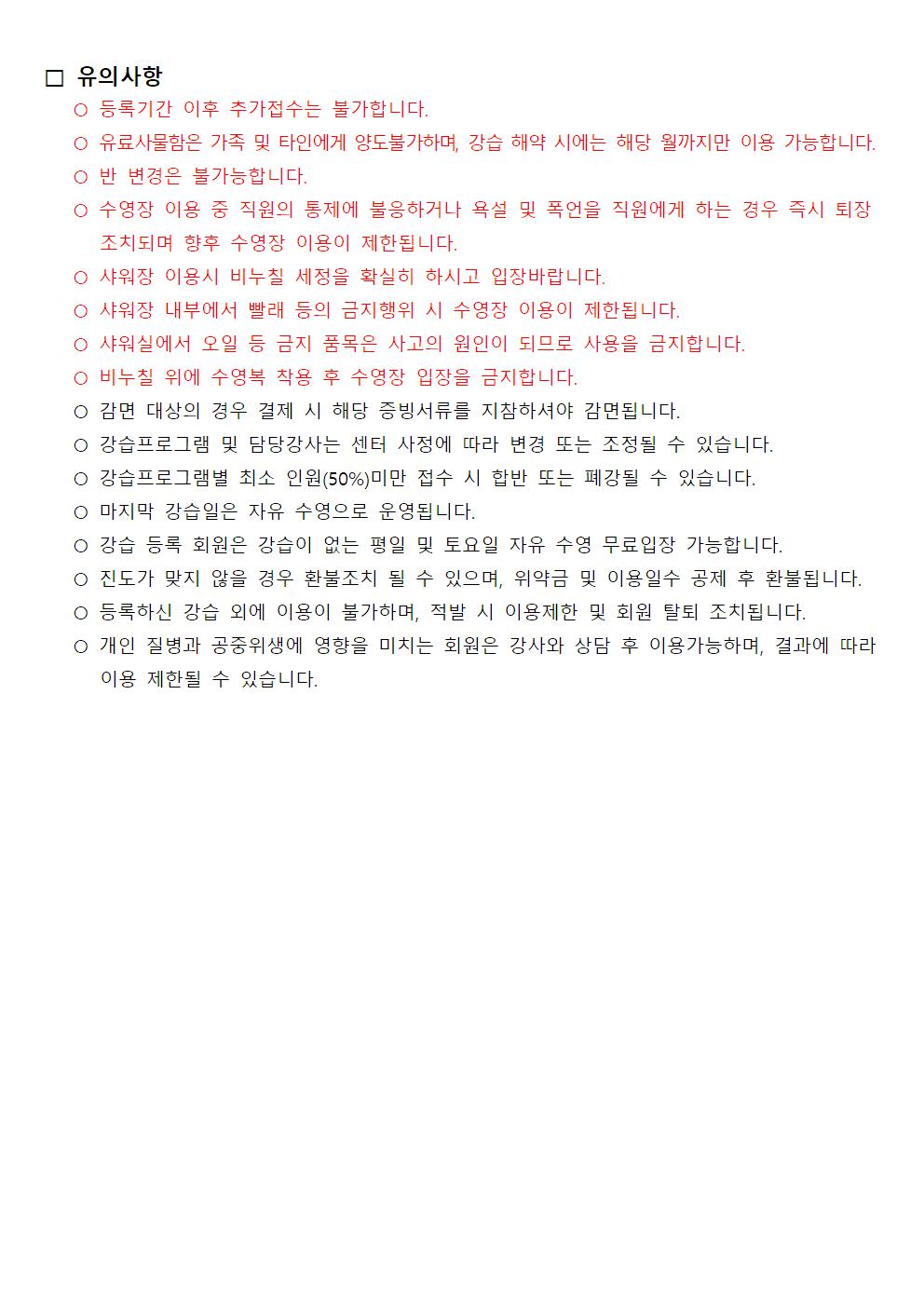신규 등록기간과 당첨자 및 대기자 명단확인은 홈페이지 또는 안내데스크를 통해 꼭 확인하시어 진행해주시길 바랍니다.