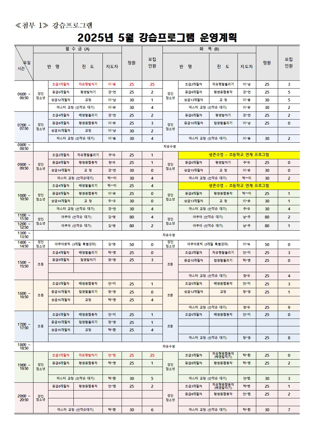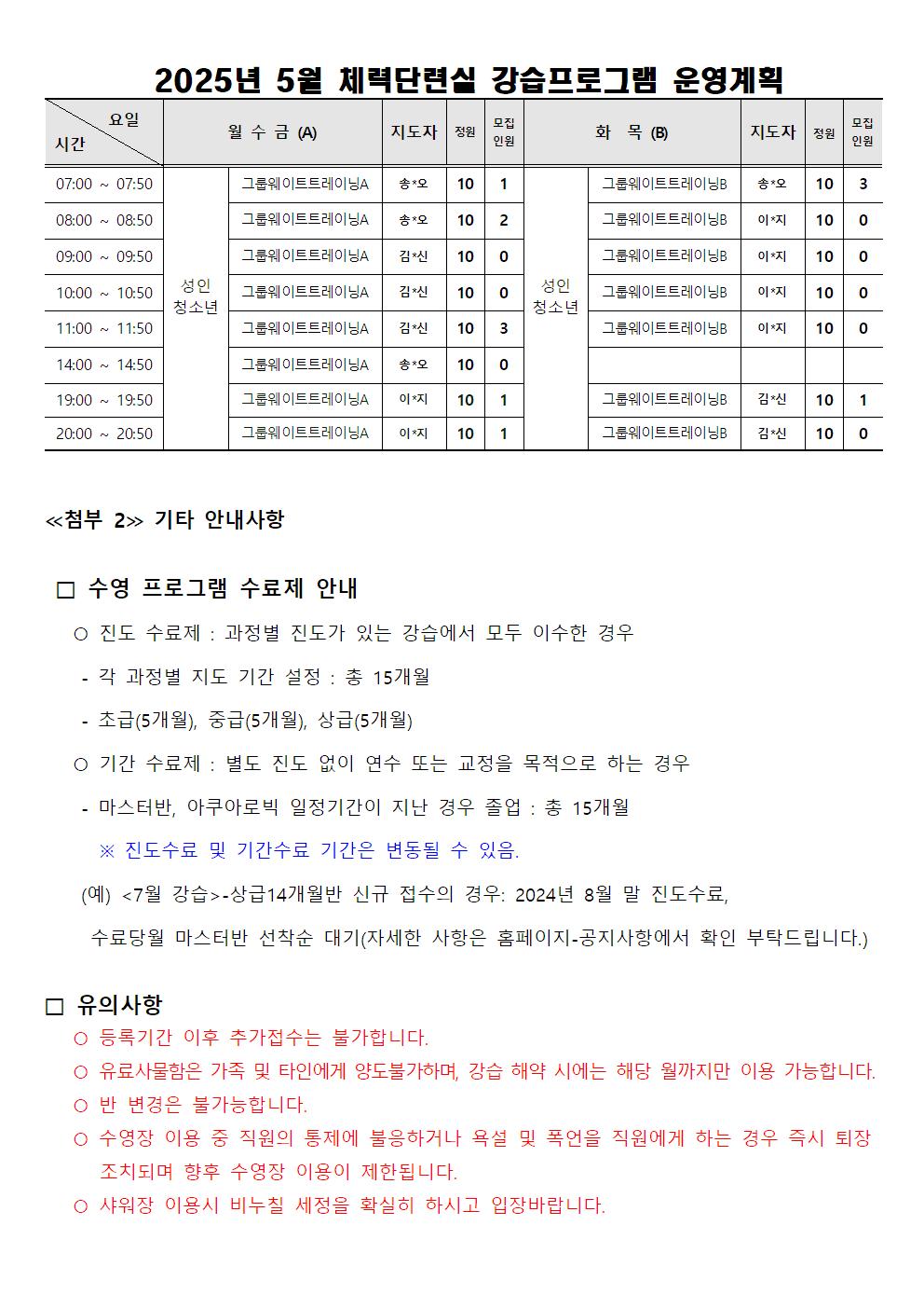 동탄중앙어울림센터 2025년 5월 정규강습 신규회원 모집 안내