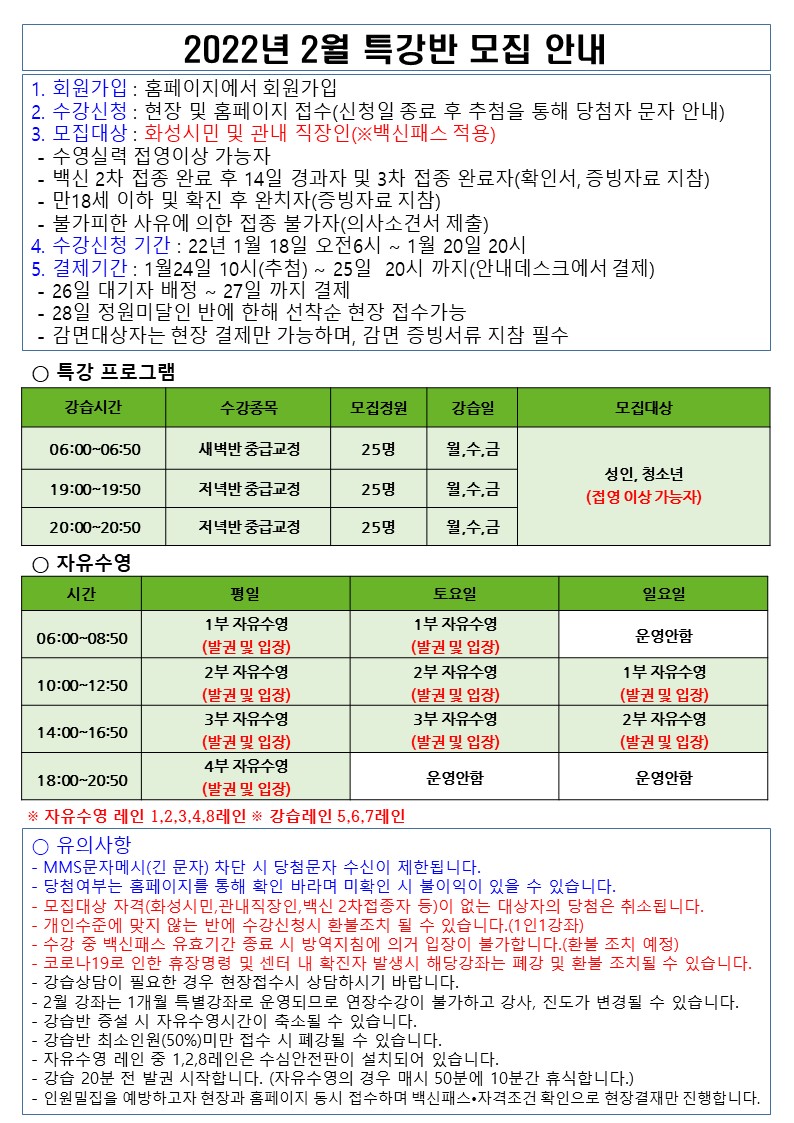 동탄중앙어울림센터 2022년 2월 특강반 모집 안내 작성자 관리자 작성일 2022년 1월 14일 14시 8분 38초 조회 1,287 2월 특강반 모집 안내.jpg [ Size : 306.08KB, Down : 300 ] 미리보기 다운로드 목록보기